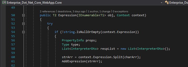 The interpreter services class can find out the interface has two same seem like function name, such as Expression, Expression2 which because these are on behalf of two different operation methods to explain the executing interpreter pattern concept operation. The first method is to fasten the response class file with the List object in the function block. The second method is that the response class uses the generic skill to explain the response class file with the ICollection object.