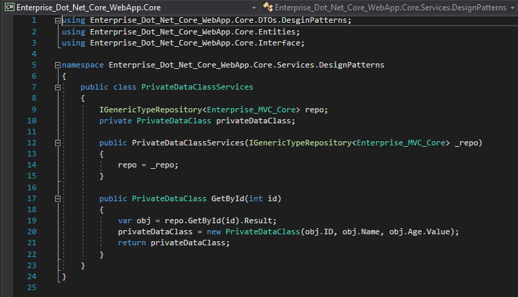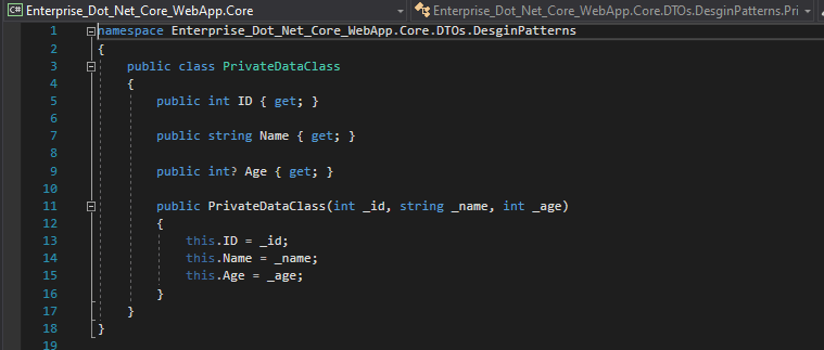 Step 1 Create the data transfer object(DTO) file for the private data class file that is in the Core project.